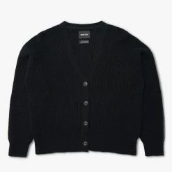 The Classic Mastercut is a slightly oversized, textured women’s v cardigan.