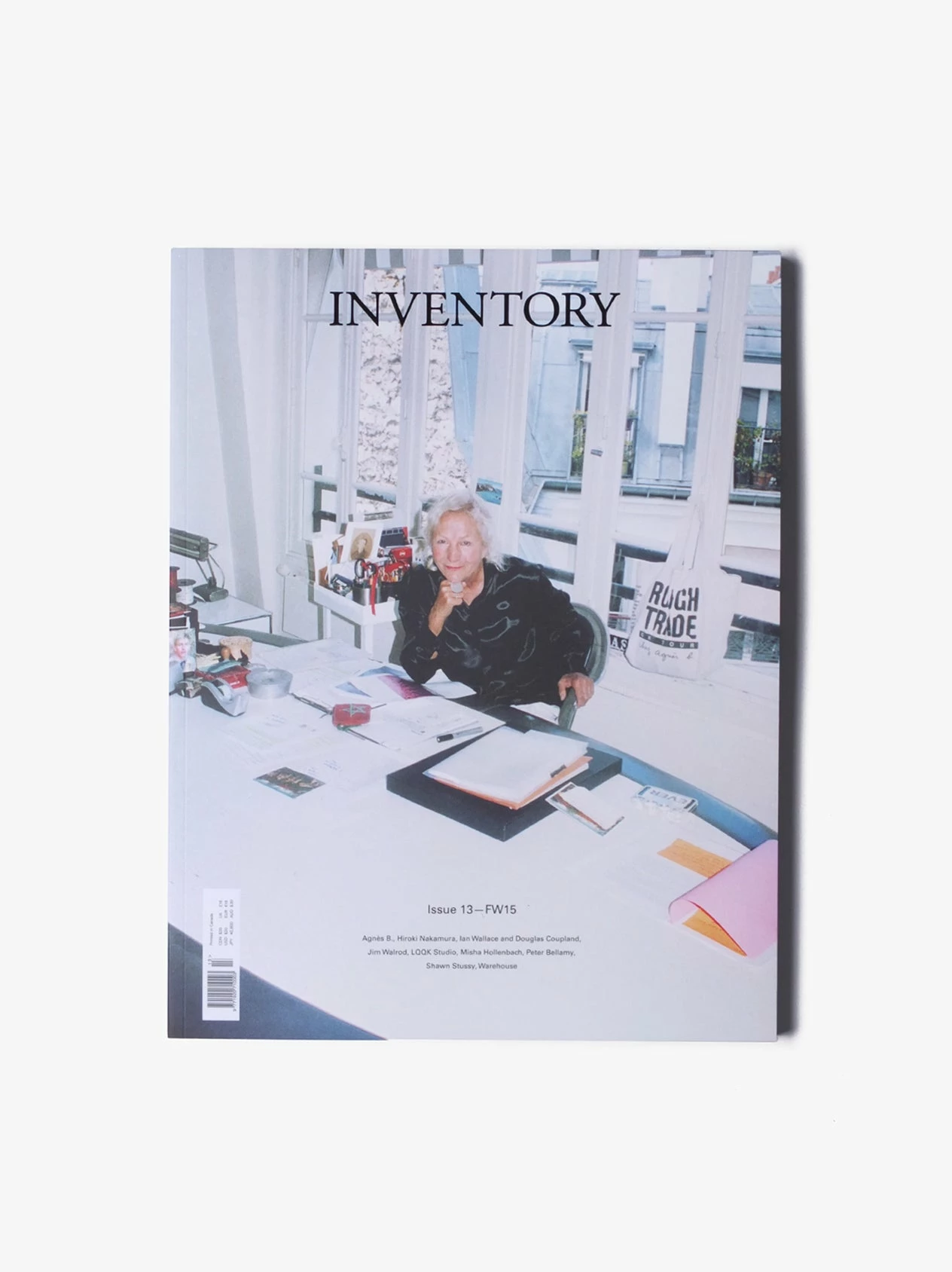 The thirteenth edition of Inventory also includes Shawn Stussy, Douglas Cou- pland and Ian Wallace, LQQK Studio, Jim Walrod, Warehouse and Misha Hollenbach; a selection of seasonal fashion stories; and contributions by Hiroki Nakamura, Sarah Soquel Morhaim, Peter Bellamy and Bruno Staub.