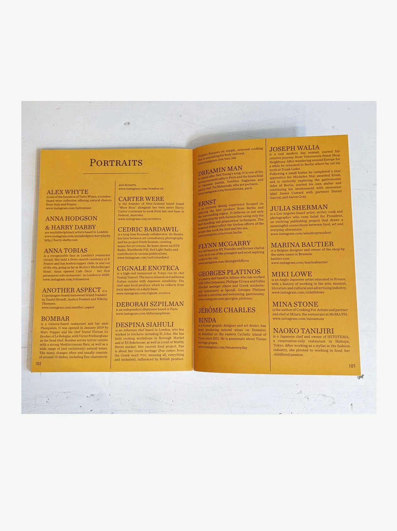 All somehow related to food, some professional chefs, some merely food epicureans, they all pitched in with their favourite recipes and cuisine anecdotes. Marina Bautier, designer and spare time cooking enthusiast, also contributed to the publication